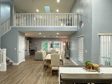 An open-concept design with a seamless transition between the spacious living area, kitchen, and dining space.